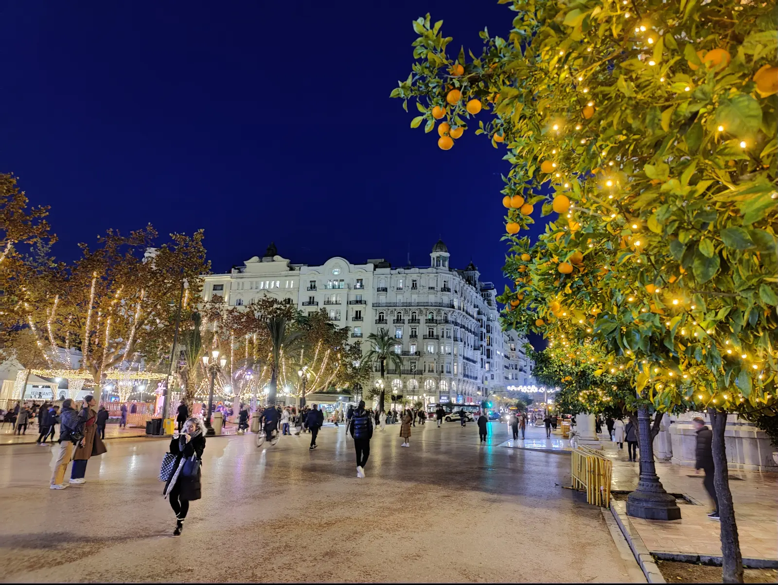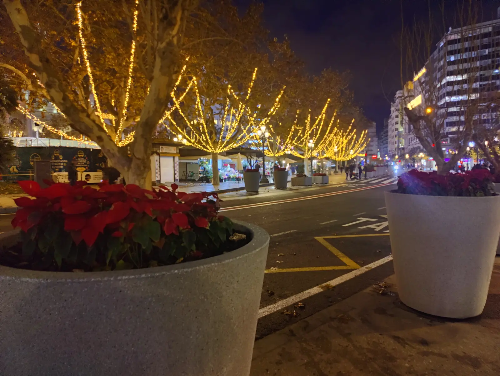 A w grudniu, cóż skoro już tu trafiłem drugi raz, to tym razem postanowiłem zobaczyć miasto wieczorem, szczególnie że to czas świąt i są już świąteczne dekoracje. Drzewa pomarańczowe ubrane w świąteczne lampki - bomba. No i wszędzie te poinsecje (gwiazdy betlejemskie). Widać, że temperatura pozwala na więcej niż np. w naszym kraju.