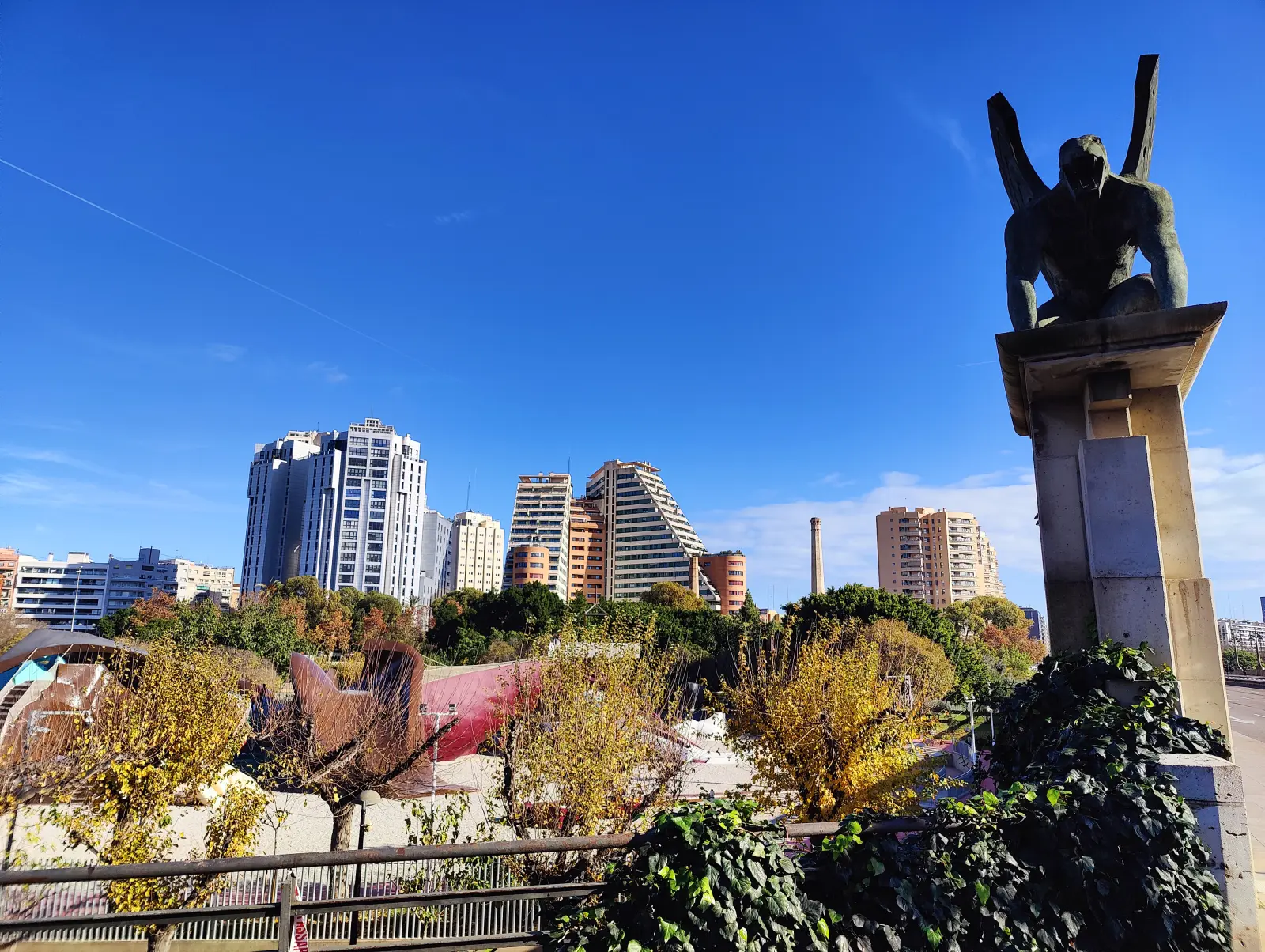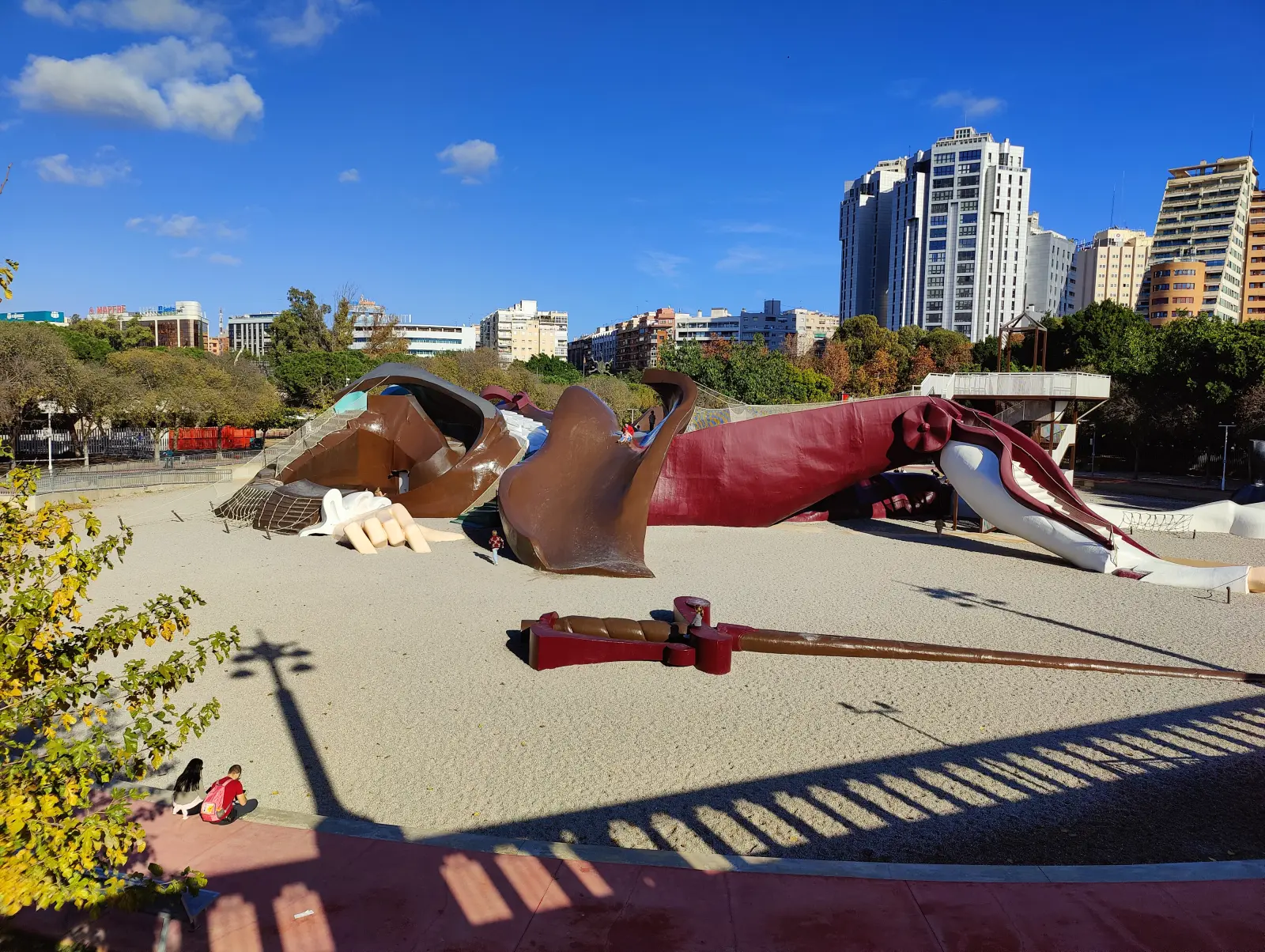 Wogóle dużo rzeczy w tym parku - fontanny, boiska, stadion lekkoatletyczny, gigantyczna zjeżdżalnia, wybiegi dla psów. Właśnie - Walencja to miasto przyjazne psom - nie ma problemów z zabieraniem czworonogów do środków komunikacji miejskiej, czy też pubów i restauracji. To też miejsce przyjazne biegaczom - w parku widziałem specjalne znaki ścieżka do biegania i obok zakaz rowerów i hulajnóg.